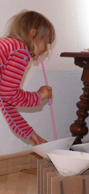 - mit einem laaaangen Röhrchen als Rüssel aus einer „Blüte“ Nektar (Apfelsaft) geschlürft.