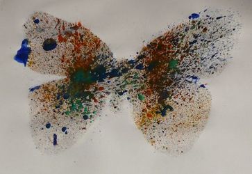 - am Mikroskop die Pailetten der Flügel betrachtet und in einem Spritzbild umgesetzt.