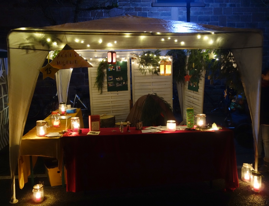Dank den Eltern unserer Wurzelkinder und Grashüpfer konnte die AGNUS-Jugend dieses Jahr wieder am Weihnachtsmarkt teilnehmen. Viele Kinder waren begeistert, die Lehmkartoffeln mit kleinen Überraschungen knacken zu dürfen. Auch Herr Bänzinger hämmerte tatkräftig bei seinem Besuch am Stand.
