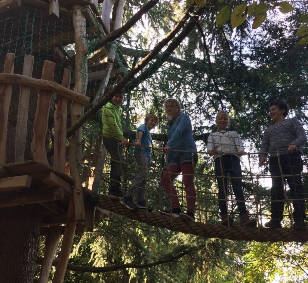 Anschließend besuchte die Gruppe den Projektegarten Heubühl. Hier konnten sich die Kinder so richtig austoben, schaukeln, balancieren oder das Baumhaus mit seine Seilbrücke erobern. Wer es etwas ruhiger mochte, erkundete den Heilkräutergarten nebenan.
