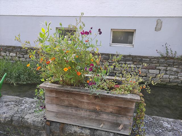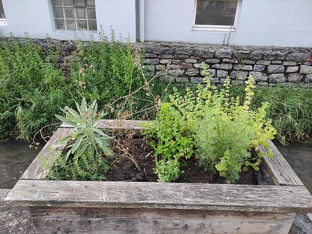 Im Frühjahr 2024 zogen die Holzkästen mithilfe des Bauhofs einige Meter näher zur Dorfmitte um. Einige Mitglieder räumten die Kästen aus, der Bauhof baute neue Konstruktionen, sodass die Kästen auf der Mauer Halt finden und von „Gutes Gemüse“ bekamen wir neue Pflanzen, die Lena nach den vier Sinnen bepflanzte. Julia malte uns sehr schöne Schilder für jeden Sinn und eine Erklärungstafel, die an die Kästen bzw. daneben montiert wurden. Nun gibt es auch einen Schöpfeimer zum Gießen, da es an dieser Stelle mit der Gießkanne schwierig war, das Wasser zu schöpfen.