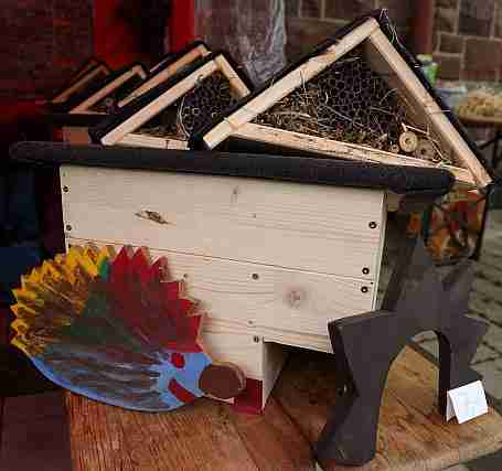 Wer auf dem Weihnachtsmarkt keine Gelegenheit hatte, ein Igelübernachtungshaus zu erstehen: Vorbestellungen für das Frühjahr werden gerne entgegen genommen.