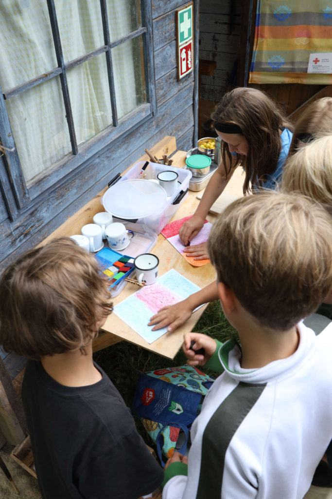 Nach ausgiebiger Stärkung malten die Kinder Flaggen für Ihre Zelte, danach wurde gespielt und sich unterhalten. Wir hatten darauf verzichtet, ein starres Programm vorzugeben, stattdessen hatte jeder die Freiheit, den Abend selbst zu gestalten.