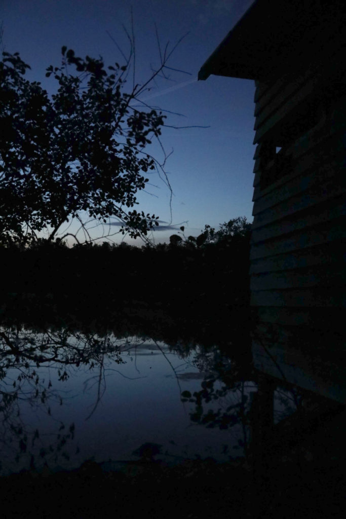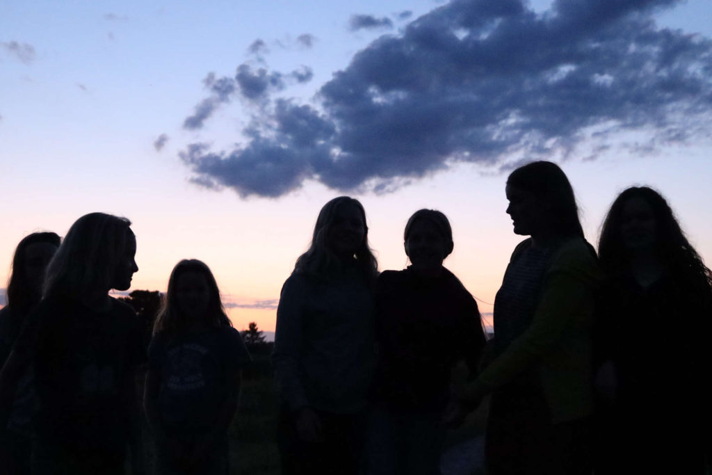 Nur die Nachtwanderung war ein fester Programmpunkt: um etwa 22 Uhr sind wir vom Walnussgarten in Richtung Moor aufgebrochen. Sonnenuntergang war um halb zehn, und es war schon ziemlich dämmrig: beste Voraussetzung, um Fledermäuse zu beobachten. War die Gruppe mit insgesamt 19 Kindern auf dem Weg zum Moor auf den Feldern nicht gerade leise, hat sich auf dem Moorsteg Stille ausgebreitet, und es war bei den Lichtverhältnissen durchaus auch ein wenig unheimlich, aber vor allem total spannend. In der Beobachtungshütte angekommen bekamen wir unsere Belohnung: unzählige Fledermäuse waren über dem Moorsee unterwegs, um sich Ihr Frühstück zu holen. Sonja hatte den Fledermausdetektor dabei, der die Ultraschalllaute der Fledermäuse in für Menschen hörbare Frequenzen umwandelt. Einige Kinder konnten sogar die hohen Fledermausrufe direkt hören.