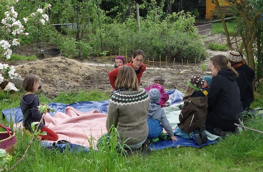 Unsere Gruppe trifft sich ein- bis zweimal im Monat im Garten in der Waldbrücke. Später werden wir auch Ausflüge, z.B. in den Wald, ins Moor oder an den Bach, unternehmen. Wir wollen die Kinder auf spielerische Weise mit der Natur vertraut machen und für den Naturschutz sensibilisieren, wobei die älteren Geschwister ihre Erfahrungen mit den jüngeren teilen. Bei uns gibt es unter anderem Spiele für die Kleinsten, einfache Experimente für die Größeren, etwas Fachwissen für die Eltern – aber vor allem Naturerfahrung mit allen Sinnen und ganz viel Freude am Draußen sein.