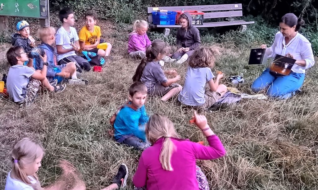 Anschließend besuchte die Gruppe den Projektegarten Heubühl. Hier konnten sich die Kinder so richtig austoben, schaukeln, balancieren oder das Baumhaus mit seine Seilbrücke erobern. Wer es etwas ruhiger mochte, erkundete den Heilkräutergarten nebenan.