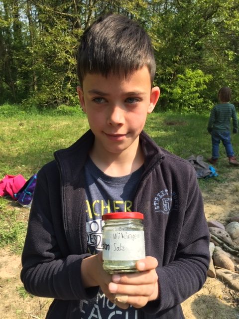 Die AGNUS-Kinder sind am Samstag, den 18.5.2019, im Wald gewesen und haben Wikingersalz gemacht. Zuerst haben wir Feuer mit Holunderholz gemacht. Wir haben Salzkörner in einem Topf geräuchert und diese immer wieder umgerührt. Als das Salz braun wurde, haben wir es vom Feuer geholt. Als es etwas abgekühlt war, haben wir es zusammen mit getrockneten Birkenblättern klein gemörsert. Es hat viel Spaß gemacht und war sehr lecker.
