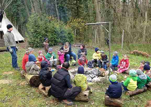 Seit letztem Sommer ist der Rahmen, in dem unsere Wurzelkinder die Natur kennen lernen, „Indianer“. Die Indianer lebten in und mit der Natur auf eine sehr achtsame, nachhaltige Weise. Ihr Respekt gegenüber allen Lebewesen drückte sich ganz verschieden aus. So ernteten sie von Pflanzen nur so viel, wie sie derzeit brauchten und dass die Pflanze überlebt. Gejagte Tiere wurden möglichst vielseitig und in allen Teilen verarbeitet. Zudem dankten sie mittels einer rituellen Handlung der Pflanze oder dem Tier, indem sie der Natur etwas zurück gaben. In diesem Sinne bietet der Rahmen eine breite Vielfalt für unsere Themen Natur- und Umweltschutz. Die erste Idee war ein Tipi zu stellen und Familie Weiß stellte ihr Grundstück auf dem Kirchberg zur Verfügung. Im September ging es dann endlich los. An zwei Terminen trafen wir uns auf dem Spielplatz, um auf dem Weg zum Grundstück Spuren in der Natur zu lesen und Müll einzusammeln (Stichwort Littering). Dort sangen wir das Lied „Uns gehört nicht die Erde“ und wurden mit einem Räucherritual gereinigt. Die Kinder konnten einer Geschichte über die Alraun und die Pusteblume im Tipi lauschen, banden sich Kräuter-Sticks und bauten ein kleines Tipi. Sie machten aus Astgabeln und gesammelten Kronkorken eine Rassel und bastelten Namen-Medallion und Stirnbänder aus Naturmaterialien. Auch die Winterwerkstatt hat den Rahmen „Indianer“ im Aspekt Schutz vor jahreszeitlichen Härten mit der Geschichte „Indianerjunge kleiner Mond“ und dem Bau von Vogelhäuschen aufgegriffen. Dazu wurden Musikinstrumente aus Naturmaterialien hergestellt, die bei den Außenterminen zum Einsatz kommen. Beim ersten Termin jetzt im April ging es wieder im festgelegten Rahmen an verschiedene Stationen. Im Tipi wurde eine Feuergeschichte erzählt und es konnten Weidenringe geflochten werden, mit denen Ziel- und Treffspiele gespielt wurden. Der Natur gaben wir Ringelblumensamen zurück. Im Freispiel ging es in ein nah gelegenes Waldstück, auch um Feuerholz zu sammeln. Die Begeisterung der Kinder an den Terminen ist groß. Es macht ihnen viel Spaß mit den Leiterinnen Mona, Diana und Navina in so einem wundervollen Rahmen die Natur zu erkunden und spielerisch zu lernen. Wir danken allen, die dies möglich machen. 🙂