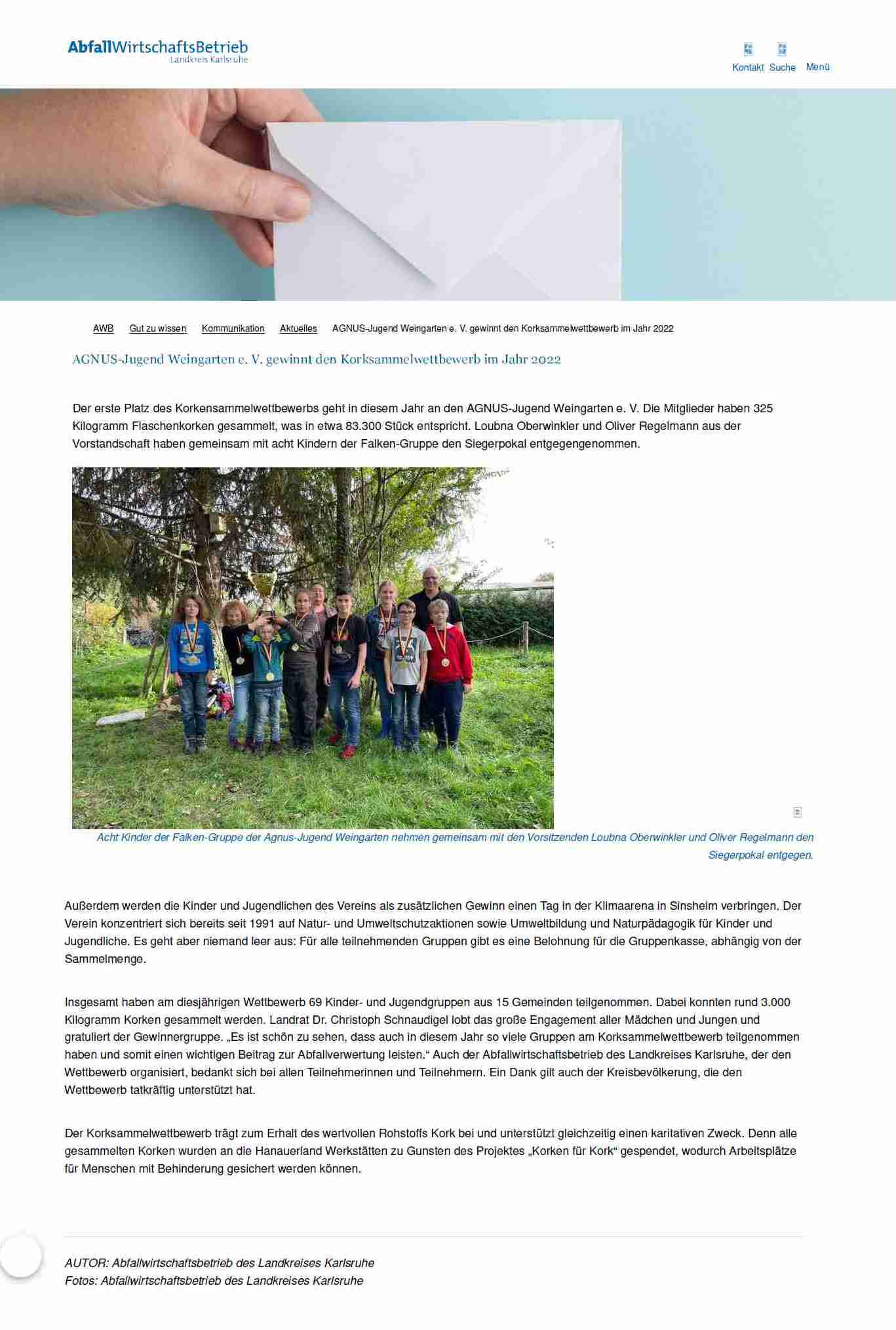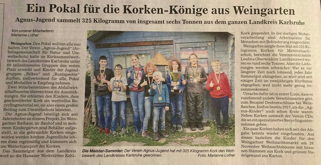 Auch dieses Jahr sind wir Sieger beim Korksammelwettbewerb geworden. Vom Preisgeld werden wir mit den Kindergruppen Buntspechte und Falken einen Ausflug zur Klima-Arena nach Sinsheim machen.