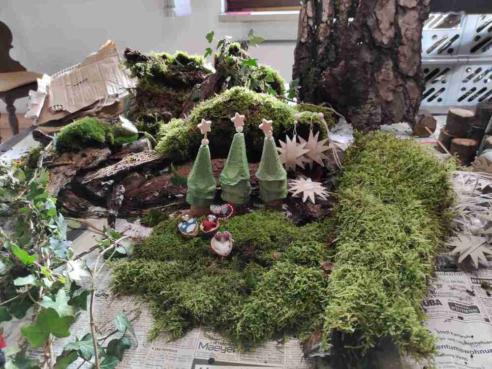 Mit neuen Leuten kommen neue Ideen. Der Stand vom Weihnachtsmarkt sollte 2022 besonders schön werden. Dafür wurden Tannenbäume aller Art von den Kindern, Eltern und Leiterinnen hergestellt.