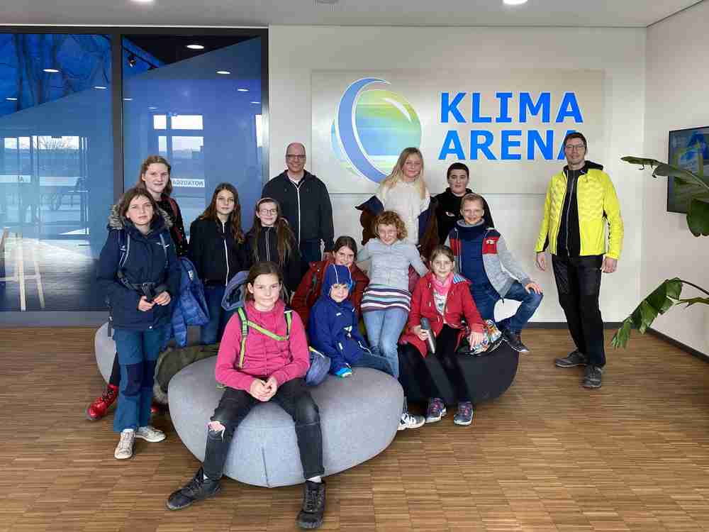 Am Sonntag, den 06.04.2025 war es soweit: 12 Falken und Buntspechte sowie 3 Erwachsene (Anne, Sonja und Wolfram) haben sich am Bahnhof Weingarten um 9 Uhr getroffen, um mit der S-Bahn nach Wiesloch-Walldorf und von da aus mit dem Bus weiter zum Bahnhof in Sinsheim zu fahren. Kurz vor 11 Uhr dort angekommen, haben wir mit einem Fußmarsch von etwa 30 Minuten die Klima-Arena erreicht, wo Loubna für uns vorab eine Führung für 11:30 gebucht hatte. Die Zeit hat noch für eine kleine Pause für alle gereicht, bevor es mit der Führung losging.
