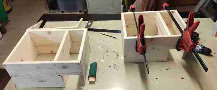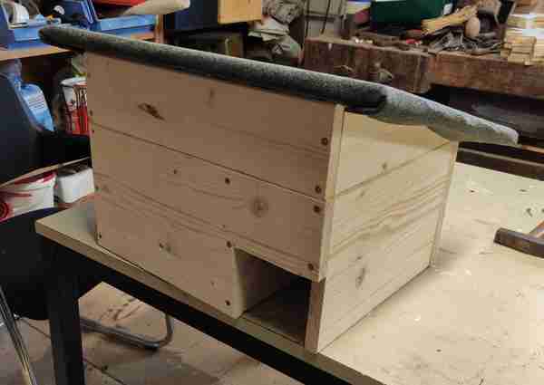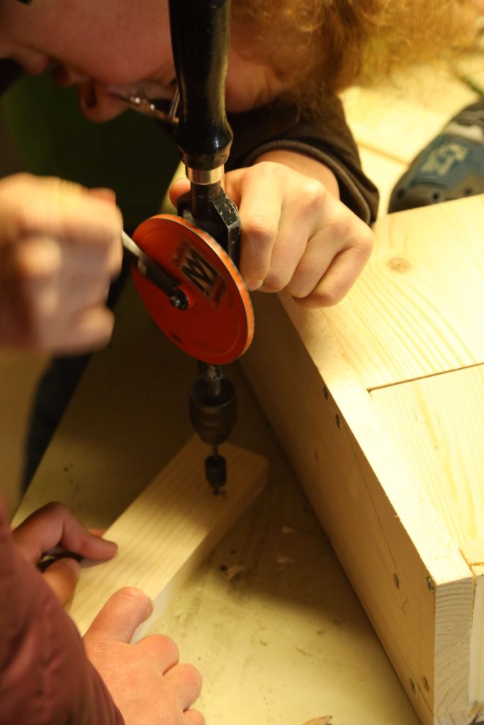 Während des Zeichnens hatte Andreas die Bretter für die Igehäuser zurecht geschnitten, so dass eifrig gebohrt und geschraubt und diese zusammengebaut werden konnten. Die Ergebnisse ließen sich sehen.