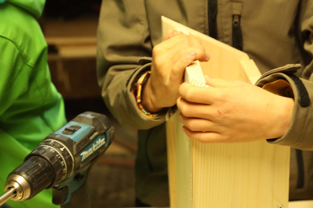 Für das Kindergartenprojekt „Vögel“ bauten die Falken am Samstag, 20. April 2024Vogelfutterkästen, die im Rahmen der Aktion den Kindergärten mit gutem Futter geschenkt wurden. Der Plan stand, das Holz war grob zugesägt. Es musste nur noch zusammengebaut werden … was sich als ganz schön knifflig für die acht Kinder und Jugendlichen herausstellte. Der Plan wollte nämlich erstmal verstanden und die richtigen Bretter gefunden werden. Dazu kam, dass die Löcher vorgebohrt werden mussten. Da die Akkuschrauber rar waren, griffen die Kinder zu handbetriebenen Bohrern, was erstaunlich gut funktionierte. Die richtige Reihenfolge der Bretter war nun wichtig und was anschließend nicht ganz passte, wurde durch Schleifpapier passend gemacht.