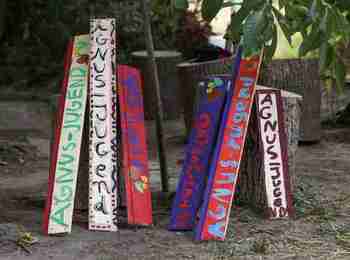 Nach einer kleinen mitgebrachten Stärkung (leider durften wir wegen der Brandschutzgefahr kein Feuer machen) ging es daran, zusammen mit Sonja für unsere neu gepachteten Obstbäume Schilder mit unserem Namen zu malen, Löcher zu bohren und diese gleich dort zu befestigen. Wir bitten darum, das Obst für die AGNUS-Jugend an den Bäumen zu lassen, denn wir wollen es im Herbst weiter verarbeiten.
