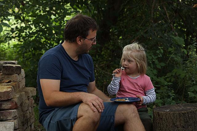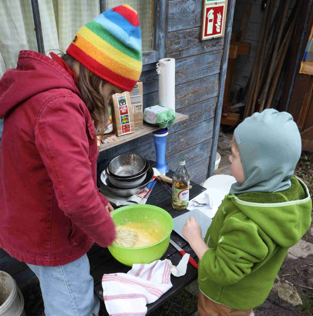 Am 22. Mai gab es ein richtiges Lagerfeuer in der großen Feuerschale, mit dem die Kinder in kleinen Eisenpfännchen Pfannkuchen backen konnten – natürlich unter tatkräftiger Unterstützung der Eltern.
