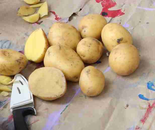 Am 23.10. gab es wieder was im Fühlsäckchen zu erfühlen. Wieder rund – oder doch nicht ganz so rund? Natürlich: eine Kartoffel. Die Kartoffel gehört inzwischen bei uns ganz selbstverständlich auf den Acker, obwohl sie ursprünglich aus Amerika kommt. In verschiedenen Gruppen konnten die Rotkehlchen alles mögliche über die Kartoffel erfahren. Wie wächst sie und wie wird sie geerntet, wie kocht man sie (was sogleich in der Praxis am Feuer ausprobiert wurde), und womit schmeckt die Kartoffel besonders gut: mit selbstgemachter Kräuterbutter natürlich. Zusammen am Feuer haben es sich die Rotkehlchen mit den Kartoffeln und der Butter gut gehen lassen. Zum Abschluss konnten die Kinder aus den Kartoffeln mit Hilfe von Ausstechern Stempel basteln und damit Tischkarten mit Wasserfarben bedrucken.