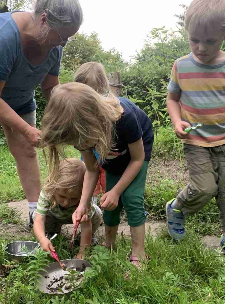 Kindergartenkinder erkunden unter der Leitung von Sabine