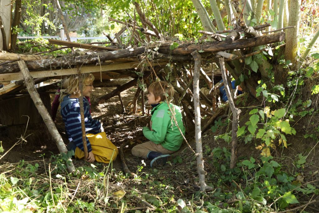 Das Thema unseres Treffens im Oktober war der Herbst. Nach einer Einstimmung mit einer Geschichte über die verschiedenen Herbstfrüchte wie Eicheln, Kastanien und Bucheckern, haben wir uns beim Spiel „Herbstsalat“ aufgewärmt. Anschließend wurde reihum in Kleingruppen gewerkelt: Die einen bastelten mit Herbstfrüchten und Laub verzierte Windlichter oder gestalteten Baum-Bilder aus Handabdrücken und Laub während auf dem hinteren Gartengrundstück aus Brettern und Ästen ein Unterschlupf gebaut wurde. Die Kinder waren so eifrig dabei, dass man sie nur noch mit Popcorn am Lagerfeuer wieder daraus hervorlocken konnte.
