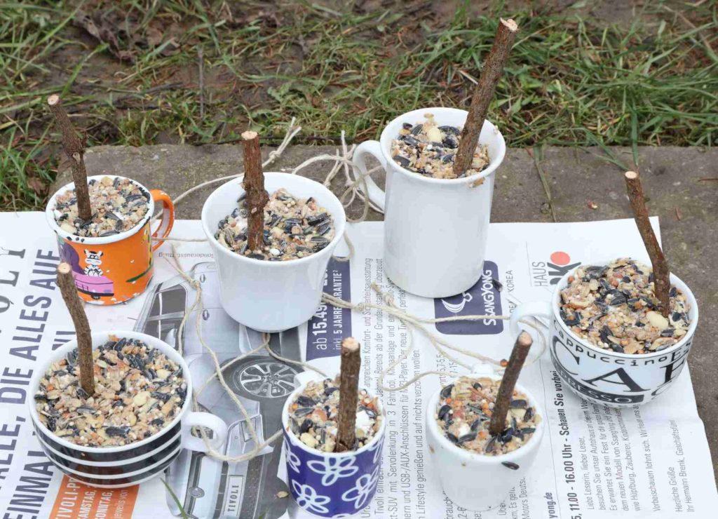 Was machen eigentlich die Tiere im Winter, wenn es kalt ist und es kaum Nahrung gibt? Mit dieser Frage beschäftigten sich die Kinder der Spatzen-Gruppe bei ihrem ersten Treffen des Jahres an einem frostigen Januartag. Bei einem Suchspiel im AGNUS-Jugend-Garten haben wir die verschiedenen Überwinterungsstrategien der Tiere kennengelernt und sind anschließend in die Rolle des Eichhörnchens geschlüpft. Dabei haben wir festgestellt, dass es gar nicht so einfach ist, ein gutes Versteck für seine Nüsse zu finden, an das man sich später noch erinnert, das aber nicht von anderen geplündert wird. Wie gut, dass das Eichhörnchen seinen guten Geruchssinn dabei nutzen kann. Nach einer Stärkung mit Würstchen am Lagerfeuer haben wir kleine Tassen mit einer Mischung aus Fett und Vogelfutter gefüllt, ein Stöckchen hinein gesteckt und fertig war der Futterplatz für Wintervögel zum mit Nachhause nehmen.