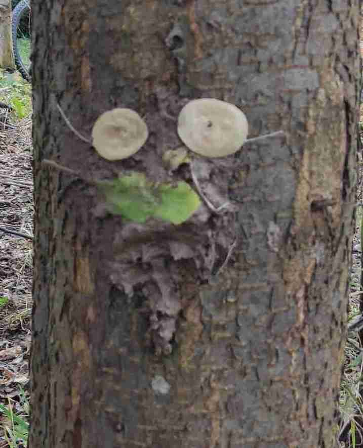 Im Dezember waren freche Wichtel unterwegs. Sie hatten – verärgert über den Krach bei den Arbeiten um die Feuerstelle – die Hütte geplündert und Sachen versteckt, sodass wir erst einmal ein paar benötigte Dinge wieder finden mussten. Da die wachsame Fichte die Diebe gefangen genommen hatte, musste sie besänftigt werden, indem die Kinder ihr ein freundliches Gesicht gaben: Aus nasser Erde, Gras, Zapfen, Nussschalen und Maiskörnern entstand ein fröhlicher Baumgeist, der die Wichtel schließlich frei gab. So konnten einige Spatzenkinder anschließend eigene Wichtel schnitzen und bemalen. Andere waren weiter kreativ mit dem angerührten Matsch, hielten sich mit Bewegungsspielen warm oder rührten fleißig Teig an, denn zum Jahresabschluss gab es das erste Mal Waffeln – die sind so lecker, da lohnt es sich etwas zu warten.