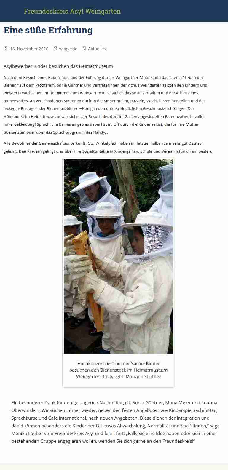 13.06.2016 Mit der AGNUS bei den Bienen (Pressemeldung der Gemeinde)