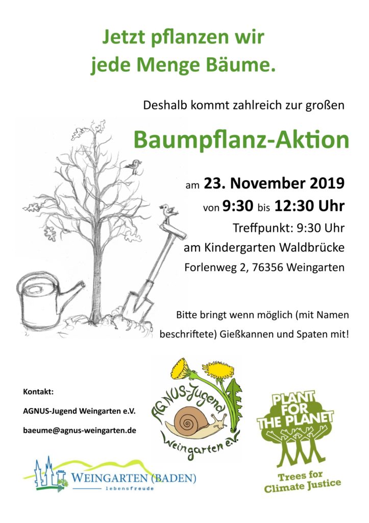 Wir unterstützen die Organisation Plant for the Planet und haben dafür einen eignen Baumzähler. Wer spenden möchte, wir leiten die Spenden gesammelt weiter, so dass sie von unserem Zähler erfasst werden. Oder ihr gebt bei der Überweisung an Plant for the Planet (IBAN DE13 7002 0500 0000 200 000) den Verwendungszweck „Baumspende für Baumzähler AGNUS-Jugend“ oder Baumzähler M 172518 an.