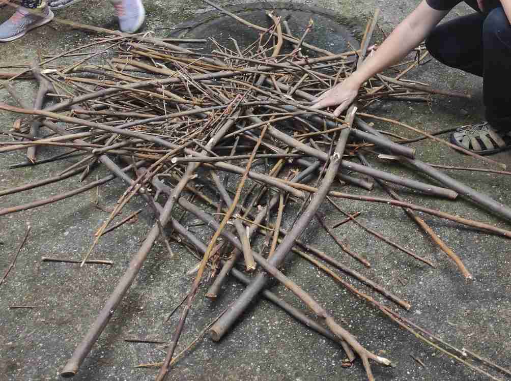 Wie die Bussarde fliegen, wie sie Mäuse fangen und wie sie gemeinsam ein Nest bauen, haben wir in einem Spiel kennengelernt, in dem alle die Rolle von Bussarden gespielt haben. In das gemeinsam gebaute sehr große Nest aus Weidenzweigen durften sich dann die ErzieherInnen in der Rolle als Mäusebussardkinder setzen. Die Kinder waren Herr und Frau Mäusebussard. Herr Mäusebussard hat die Mäuse gefangen (Toilettenpapierstücke) und zu Frau Mäusebussard gebracht, die am Nest saß und die Mäuse in kleine Stücke zerlegt hat, damit die Mäusebussardkinder sie „essen“ konnten. Zum Schluss waren die Mäusebussardkinder groß und alle konnten aus dem Nest fliegen.